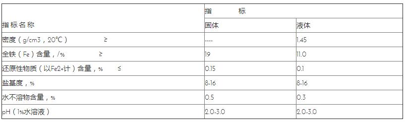 液体聚合硫酸铁性能参数